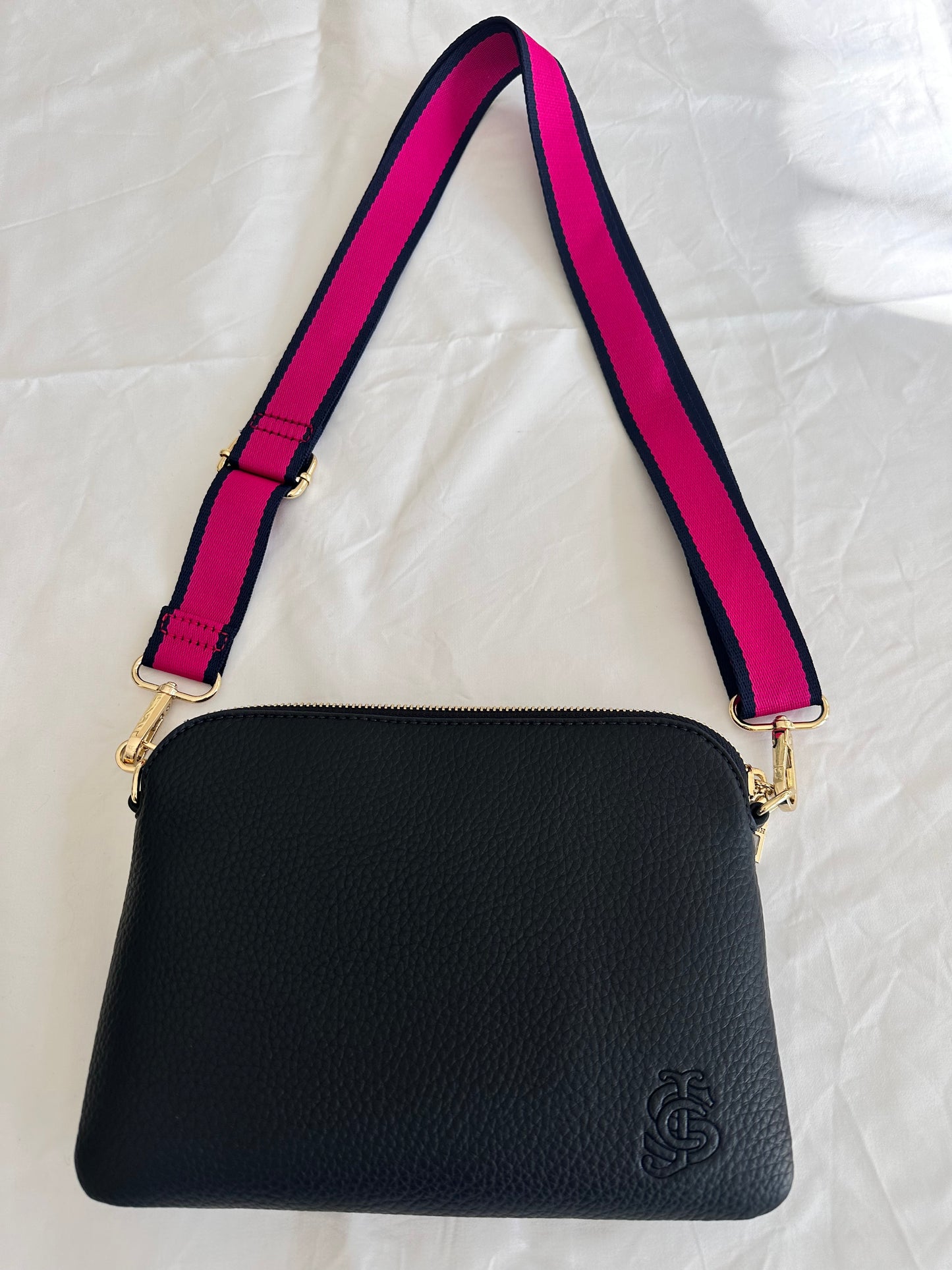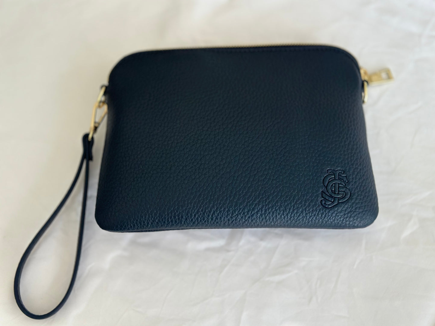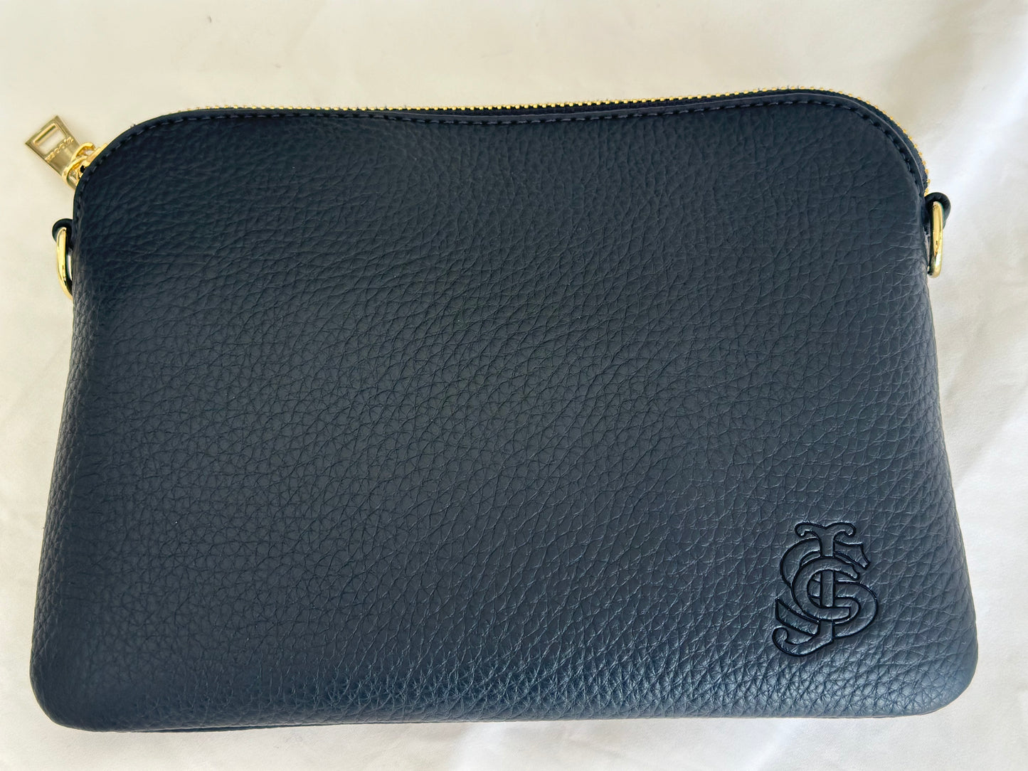 Crossbody Bag (navy & tan) with canvas stripe handles 21.5cm x 15cm x 7cm